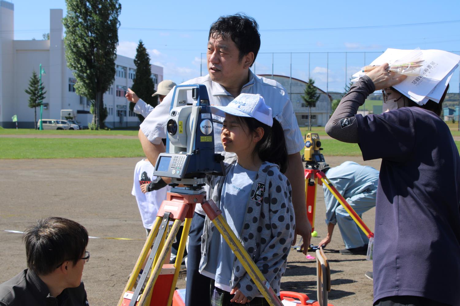 丁張りの設置は大変だ 岩農高 空知建協出前授業